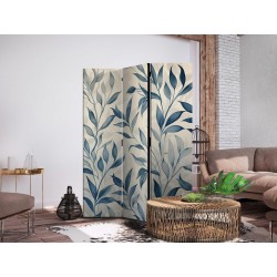 Paravent - Leaves in Blue Colors - Delicate Botanical Motif