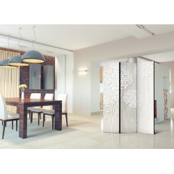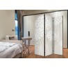Raumteiler Paravent Unsere Raumteiler Paravents haben viele Vorteile. Zunächst einmal gibt es sie in verschiedenen Varianten, d.h. sie können aus drei oder fünf Teilen bestehen. Dank der Metallscharniere lässt sich diese Dekoration leicht zusammenfalten. Die Raumteiler stehen auf einem Sockel, der auch vor Beschädigungen schützt. Dieses dekorative Element besteht aus einer soliden Holzkonstruktion. Das Satinband sorgt für einen eleganten Abschluss und verstärkt die Seiten. Unsere Raumteiler sind aus Vliesstoff gefertigt, haben also eine feine Struktur und sind frei von sichtbaren Heftklammern. Es wurde auf jedes noch so kleine Detail geachtet, so dass diese Dekoration auch durch ihre Eleganz besticht. Wir haben hier also Funktionalität, Ästhetik und Eleganz – was will man mehr von einer Dekoration?Technische Details