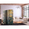 Raumteiler Paravent Unsere Raumteiler Paravents haben viele Vorteile. Zunächst einmal gibt es sie in verschiedenen Varianten, d.h. sie können aus drei oder fünf Teilen bestehen. Dank der Metallscharniere lässt sich diese Dekoration leicht zusammenfalten. Die Raumteiler stehen auf einem Sockel, der auch vor Beschädigungen schützt. Dieses dekorative Element besteht aus einer soliden Holzkonstruktion. Das Satinband sorgt für einen eleganten Abschluss und verstärkt die Seiten. Unsere Raumteiler sind aus Vliesstoff gefertigt, haben also eine feine Struktur und sind frei von sichtbaren Heftklammern. Es wurde auf jedes noch so kleine Detail geachtet, so dass diese Dekoration auch durch ihre Eleganz besticht. Wir haben hier also Funktionalität, Ästhetik und Eleganz – was will man mehr von einer Dekoration?Technische Details