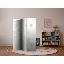 Spanische Wand Die spanische Wand kann sowohl im Wohnzimmer, Schlafzimmer, Kinderzimmer, Badezimmer als auch in der Küche aufgestellt werden. Viele Büro-, Restaurant- und Clubbesitzer entscheiden sich häufig für diese dekorative Lösung in ihren Räumlichkeiten. Die spanische Wand "Paravent - Fairy-Tale Galaxy - Moon Phases in Shades of Yellow Among Stars in Beige and Ash Colors with Stardust" ist aus geruchsneutralen Materialien hergestellt, die sicher sind und daher keine Allergien auslösen. Es ist eine vielseitige Dekorationsmöglichkeit, die viele Vorteile hat. Der Hauptvorteil ist, dass diese Dekoration leicht zu bewegen ist, so dass sie schnell und einfach neu positioniert werden kann. Wichtig ist, dass die inneren Trennwände einen UV-Schutz haben, so dass die Farben auch im Laufe der Jahre intensiv bleiben. Der Raumteiler hat Designs, die die Einrichtung jedes Raumes ergänzen können.