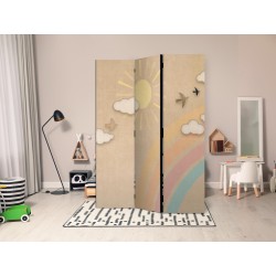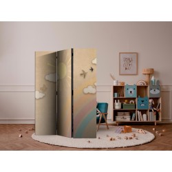 Spanische Wand Die spanische Wand kann sowohl im Wohnzimmer, Schlafzimmer, Kinderzimmer, Badezimmer als auch in der Küche aufgestellt werden. Viele Büro-, Restaurant- und Clubbesitzer entscheiden sich häufig für diese dekorative Lösung in ihren Räumlichkeiten. Die spanische Wand "Paravent - Holiday Sky - A Rainbow on a Sunny Day and Flying Birds" ist aus geruchsneutralen Materialien hergestellt, die sicher sind und daher keine Allergien auslösen. Es ist eine vielseitige Dekorationsmöglichkeit, die viele Vorteile hat. Der Hauptvorteil ist, dass diese Dekoration leicht zu bewegen ist, so dass sie schnell und einfach neu positioniert werden kann. Wichtig ist, dass die inneren Trennwände einen UV-Schutz haben, so dass die Farben auch im Laufe der Jahre intensiv bleiben. Der Raumteiler hat Designs, die die Einrichtung jedes Raumes ergänzen können.