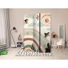 Raumteiler Paravent Unsere Raumteiler Paravents haben viele Vorteile. Zunächst einmal gibt es sie in verschiedenen Varianten, d.h. sie können aus drei oder fünf Teilen bestehen. Dank der Metallscharniere lässt sich diese Dekoration leicht zusammenfalten. Die Raumteiler stehen auf einem Sockel, der auch vor Beschädigungen schützt. Dieses dekorative Element besteht aus einer soliden Holzkonstruktion. Das Satinband sorgt für einen eleganten Abschluss und verstärkt die Seiten. Unsere Raumteiler sind aus Vliesstoff gefertigt, haben also eine feine Struktur und sind frei von sichtbaren Heftklammern. Es wurde auf jedes noch so kleine Detail geachtet, so dass diese Dekoration auch durch ihre Eleganz besticht. Wir haben hier also Funktionalität, Ästhetik und Eleganz – was will man mehr von einer Dekoration?Technische Details
