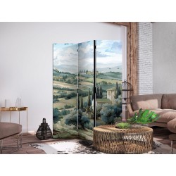Paravent "Paravent - Landscape with Green Fields and Trees - Tuscan Sunny View" Paravents sind hervorragende Dekorationselemente, die auf vielfältige Weise eingesetzt werden können. Sie verbinden perfekt Funktionalität und originelle Ästhetik. Aus diesem Grund sind sie sehr beliebt. Der Hauptvorteil ist, dass diese Dekoration einen Raum unterteilen kann, ohne dass Renovierungsarbeiten erforderlich sind. Im Folgenden finden Sie die Vorteile dieses Gestaltungselements – lassen Sie sich davon für Ihre Einrichtung inspirieren. Sie können die Paravents aus unserem Sortiment in drei Varianten kaufen, und jede von ihnen erfüllt eine interessante Funktion: Paravent – einseitig bedruckt, Paravent – doppelseitig bedruckt, Akustischer Paravent. Dies ist ein klarer Beweis dafür, dass die Trennwände auch sehr nützlich sind. Viele Menschen verwenden sie zum Beispiel, um einen Raum optisch zu unterteilen oder einen Teil davon zu verbergen. Der Raumtrenner ist auch häufig in Wirtschaftsräumen zu finden, zum Beispiel in einem Friseursalon, einem Boutique oder einer Arztpraxis. Jeder schätzt die Ästhetik und den praktischen Nutzen dieser Dekoration. Mit Raumteiler Paravent "Paravent - Landscape with Green Fields and Trees - Tuscan Sunny View" können Sie Räume in Zonen aufteilen – das Schlafzimmer in Schlaf- und Garderobenbereiche, das Wohnzimmer in Sitz- und Essbereiche. Gestalten Sie Ihre Home-Office-Ecke und grenzen Sie den Bürobereich im Wohnzimmer mit einem stilvollen Raumteiler ab. Wie Sie es verwenden, hängt von Ihrer Phantasie, Ihren Bedürfnissen und Vorlieben ab.