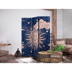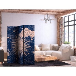 Spanische Wand Die spanische Wand kann sowohl im Wohnzimmer, Schlafzimmer, Kinderzimmer, Badezimmer als auch in der Küche aufgestellt werden. Viele Büro-, Restaurant- und Clubbesitzer entscheiden sich häufig für diese dekorative Lösung in ihren Räumlichkeiten. Die spanische Wand "Paravent - Cosmic Harmony - Illustration of the Sun and Moon on a Navy Background" ist aus geruchsneutralen Materialien hergestellt, die sicher sind und daher keine Allergien auslösen. Es ist eine vielseitige Dekorationsmöglichkeit, die viele Vorteile hat. Der Hauptvorteil ist, dass diese Dekoration leicht zu bewegen ist, so dass sie schnell und einfach neu positioniert werden kann. Wichtig ist, dass die inneren Trennwände einen UV-Schutz haben, so dass die Farben auch im Laufe der Jahre intensiv bleiben. Der Raumteiler hat Designs, die die Einrichtung jedes Raumes ergänzen können.