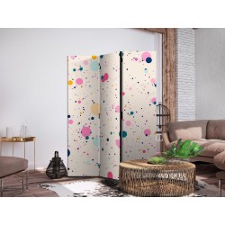 Spanische Wand Die spanische Wand kann sowohl im Wohnzimmer, Schlafzimmer, Kinderzimmer, Badezimmer als auch in der Küche aufgestellt werden. Viele Büro-, Restaurant- und Clubbesitzer entscheiden sich häufig für diese dekorative Lösung in ihren Räumlichkeiten. Die spanische Wand "Paravent - Dots - Spots and Splashes Multicolored - Cheerful Pattern on a Light Pink Background" ist aus geruchsneutralen Materialien hergestellt, die sicher sind und daher keine Allergien auslösen. Es ist eine vielseitige Dekorationsmöglichkeit, die viele Vorteile hat. Der Hauptvorteil ist, dass diese Dekoration leicht zu bewegen ist, so dass sie schnell und einfach neu positioniert werden kann. Wichtig ist, dass die inneren Trennwände einen UV-Schutz haben, so dass die Farben auch im Laufe der Jahre intensiv bleiben. Der Raumteiler hat Designs, die die Einrichtung jedes Raumes ergänzen können.