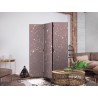Raumteiler Paravent Unsere Raumteiler Paravents haben viele Vorteile. Zunächst einmal gibt es sie in verschiedenen Varianten, d.h. sie können aus drei oder fünf Teilen bestehen. Dank der Metallscharniere lässt sich diese Dekoration leicht zusammenfalten. Die Raumteiler stehen auf einem Sockel, der auch vor Beschädigungen schützt. Dieses dekorative Element besteht aus einer soliden Holzkonstruktion. Das Satinband sorgt für einen eleganten Abschluss und verstärkt die Seiten. Unsere Raumteiler sind aus Vliesstoff gefertigt, haben also eine feine Struktur und sind frei von sichtbaren Heftklammern. Es wurde auf jedes noch so kleine Detail geachtet, so dass diese Dekoration auch durch ihre Eleganz besticht. Wir haben hier also Funktionalität, Ästhetik und Eleganz – was will man mehr von einer Dekoration?Technische Details
