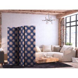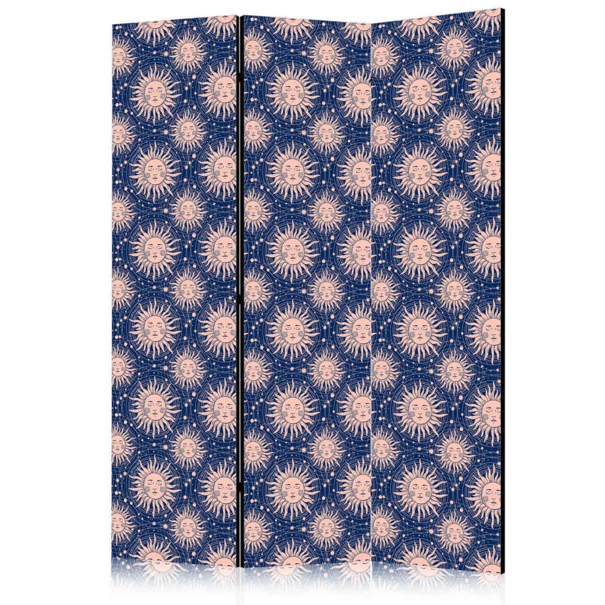 Spanische Wand Die spanische Wand kann sowohl im Wohnzimmer, Schlafzimmer, Kinderzimmer, Badezimmer als auch in der Küche aufgestellt werden. Viele Büro-, Restaurant- und Clubbesitzer entscheiden sich häufig für diese dekorative Lösung in ihren Räumlichkeiten. Die spanische Wand "Paravent - Sunny Patterns - Repeating Sun Motif on a Navy Background" ist aus geruchsneutralen Materialien hergestellt, die sicher sind und daher keine Allergien auslösen. Es ist eine vielseitige Dekorationsmöglichkeit, die viele Vorteile hat. Der Hauptvorteil ist, dass diese Dekoration leicht zu bewegen ist, so dass sie schnell und einfach neu positioniert werden kann. Wichtig ist, dass die inneren Trennwände einen UV-Schutz haben, so dass die Farben auch im Laufe der Jahre intensiv bleiben. Der Raumteiler hat Designs, die die Einrichtung jedes Raumes ergänzen können.