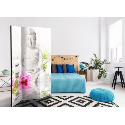 Paravent "Paravent - Buddha and Orchids" Paravents sind hervorragende Dekorationselemente, die auf vielfältige Weise eingesetzt werden können. Sie verbinden perfekt Funktionalität und originelle Ästhetik. Aus diesem Grund sind sie sehr beliebt. Der Hauptvorteil ist, dass diese Dekoration einen Raum unterteilen kann, ohne dass Renovierungsarbeiten erforderlich sind. Im Folgenden finden Sie die Vorteile dieses Gestaltungselements – lassen Sie sich davon für Ihre Einrichtung inspirieren. Sie können die Paravents aus unserem Sortiment in drei Varianten kaufen, und jede von ihnen erfüllt eine interessante Funktion: Paravent – einseitig bedruckt, Paravent – doppelseitig bedruckt, Akustischer Paravent. Dies ist ein klarer Beweis dafür, dass die Trennwände auch sehr nützlich sind. Viele Menschen verwenden sie zum Beispiel, um einen Raum optisch zu unterteilen oder einen Teil davon zu verbergen. Der Raumtrenner ist auch häufig in Wirtschaftsräumen zu finden, zum Beispiel in einem Friseursalon, einem Boutique oder einer Arztpraxis. Jeder schätzt die Ästhetik und den praktischen Nutzen dieser Dekoration. Mit Raumteiler Paravent "Paravent - Buddha and Orchids" können Sie Räume in Zonen aufteilen – das Schlafzimmer in Schlaf- und Garderobenbereiche, das Wohnzimmer in Sitz- und Essbereiche. Gestalten Sie Ihre Home-Office-Ecke und grenzen Sie den Bürobereich im Wohnzimmer mit einem stilvollen Raumteiler ab. Wie Sie es verwenden, hängt von Ihrer Phantasie, Ihren Bedürfnissen und Vorlieben ab.