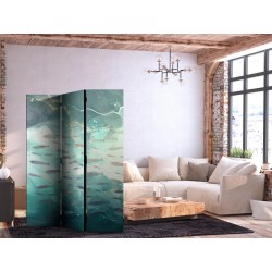 Paravent "Paravent - Escaping Fish - Very Fast Swimming Fishes in Muted Colors Among Sea Depths" Paravents sind hervorragende Dekorationselemente, die auf vielfältige Weise eingesetzt werden können. Sie verbinden perfekt Funktionalität und originelle Ästhetik. Aus diesem Grund sind sie sehr beliebt. Der Hauptvorteil ist, dass diese Dekoration einen Raum unterteilen kann, ohne dass Renovierungsarbeiten erforderlich sind. Im Folgenden finden Sie die Vorteile dieses Gestaltungselements – lassen Sie sich davon für Ihre Einrichtung inspirieren. Sie können die Paravents aus unserem Sortiment in drei Varianten kaufen, und jede von ihnen erfüllt eine interessante Funktion: Paravent – einseitig bedruckt, Paravent – doppelseitig bedruckt, Akustischer Paravent. Dies ist ein klarer Beweis dafür, dass die Trennwände auch sehr nützlich sind. Viele Menschen verwenden sie zum Beispiel, um einen Raum optisch zu unterteilen oder einen Teil davon zu verbergen. Der Raumtrenner ist auch häufig in Wirtschaftsräumen zu finden, zum Beispiel in einem Friseursalon, einem Boutique oder einer Arztpraxis. Jeder schätzt die Ästhetik und den praktischen Nutzen dieser Dekoration. Mit Raumteiler Paravent "Paravent - Escaping Fish - Very Fast Swimming Fishes in Muted Colors Among Sea Depths" können Sie Räume in Zonen aufteilen – das Schlafzimmer in Schlaf- und Garderobenbereiche, das Wohnzimmer in Sitz- und Essbereiche. Gestalten Sie Ihre Home-Office-Ecke und grenzen Sie den Bürobereich im Wohnzimmer mit einem stilvollen Raumteiler ab. Wie Sie es verwenden, hängt von Ihrer Phantasie, Ihren Bedürfnissen und Vorlieben ab.