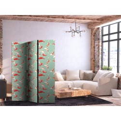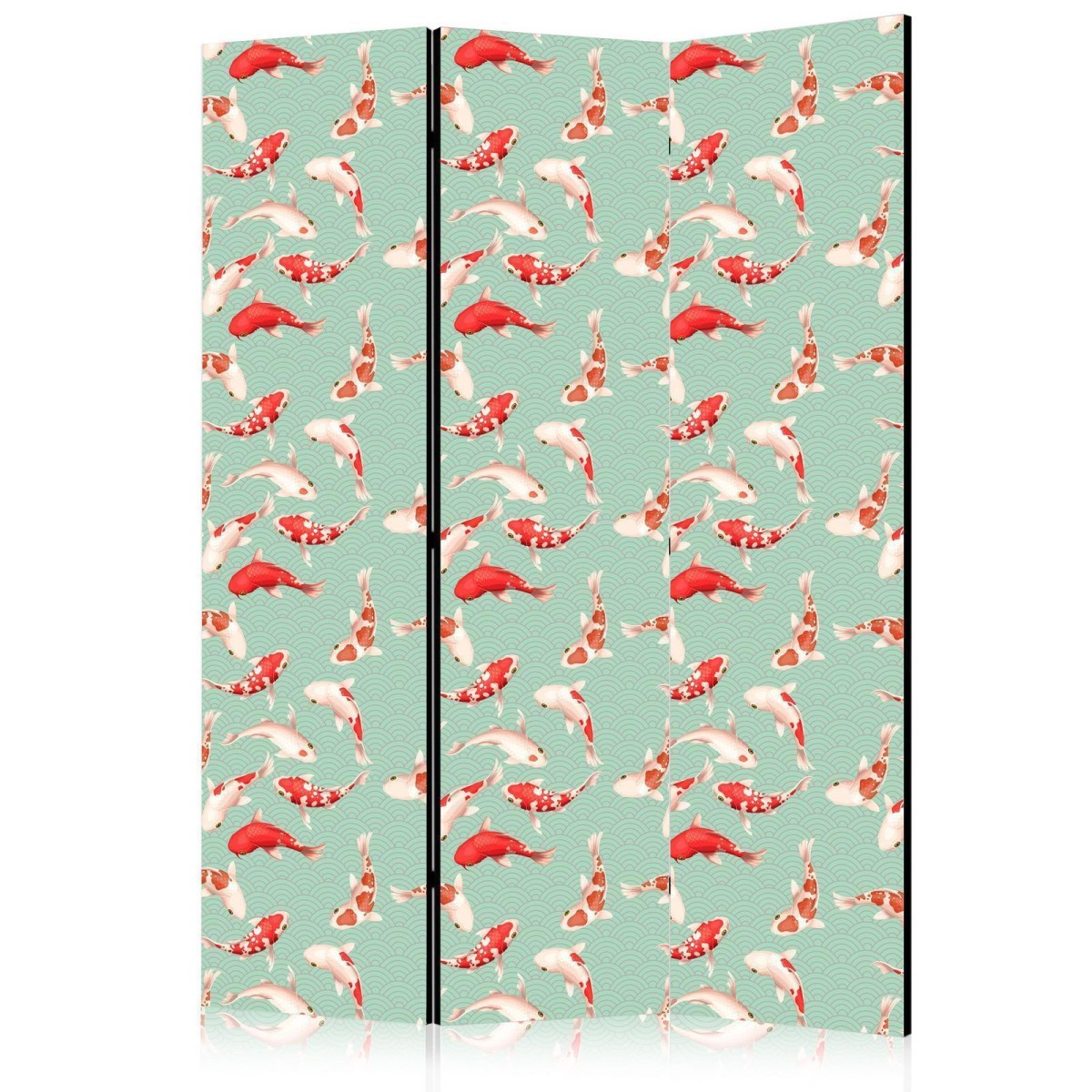 Spanische Wand Die spanische Wand kann sowohl im Wohnzimmer, Schlafzimmer, Kinderzimmer, Badezimmer als auch in der Küche aufgestellt werden. Viele Büro-, Restaurant- und Clubbesitzer entscheiden sich häufig für diese dekorative Lösung in ihren Räumlichkeiten. Die spanische Wand "Paravent - Fish and Japanese Pattern - Koi Fish in Orange-Cream Colors on a Green-Mint Background with an Oriental Pattern" ist aus geruchsneutralen Materialien hergestellt, die sicher sind und daher keine Allergien auslösen. Es ist eine vielseitige Dekorationsmöglichkeit, die viele Vorteile hat. Der Hauptvorteil ist, dass diese Dekoration leicht zu bewegen ist, so dass sie schnell und einfach neu positioniert werden kann. Wichtig ist, dass die inneren Trennwände einen UV-Schutz haben, so dass die Farben auch im Laufe der Jahre intensiv bleiben. Der Raumteiler hat Designs, die die Einrichtung jedes Raumes ergänzen können.