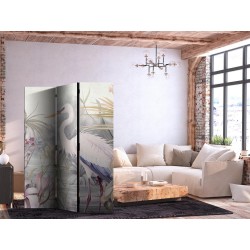 Spanische Wand Die spanische Wand kann sowohl im Wohnzimmer, Schlafzimmer, Kinderzimmer, Badezimmer als auch in der Küche aufgestellt werden. Viele Büro-, Restaurant- und Clubbesitzer entscheiden sich häufig für diese dekorative Lösung in ihren Räumlichkeiten. Die spanische Wand "Paravent - Heron wading in a pond – illustration in bright colours" ist aus geruchsneutralen Materialien hergestellt, die sicher sind und daher keine Allergien auslösen. Es ist eine vielseitige Dekorationsmöglichkeit, die viele Vorteile hat. Der Hauptvorteil ist, dass diese Dekoration leicht zu bewegen ist, so dass sie schnell und einfach neu positioniert werden kann. Wichtig ist, dass die inneren Trennwände einen UV-Schutz haben, so dass die Farben auch im Laufe der Jahre intensiv bleiben. Der Raumteiler hat Designs, die die Einrichtung jedes Raumes ergänzen können.