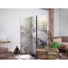 Raumteiler Paravent Unsere Raumteiler Paravents haben viele Vorteile. Zunächst einmal gibt es sie in verschiedenen Varianten, d.h. sie können aus drei oder fünf Teilen bestehen. Dank der Metallscharniere lässt sich diese Dekoration leicht zusammenfalten. Die Raumteiler stehen auf einem Sockel, der auch vor Beschädigungen schützt. Dieses dekorative Element besteht aus einer soliden Holzkonstruktion. Das Satinband sorgt für einen eleganten Abschluss und verstärkt die Seiten. Unsere Raumteiler sind aus Vliesstoff gefertigt, haben also eine feine Struktur und sind frei von sichtbaren Heftklammern. Es wurde auf jedes noch so kleine Detail geachtet, so dass diese Dekoration auch durch ihre Eleganz besticht. Wir haben hier also Funktionalität, Ästhetik und Eleganz – was will man mehr von einer Dekoration?Technische Details