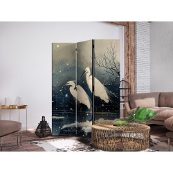 Spanische Wand Die spanische Wand kann sowohl im Wohnzimmer, Schlafzimmer, Kinderzimmer, Badezimmer als auch in der Küche aufgestellt werden. Viele Büro-, Restaurant- und Clubbesitzer entscheiden sich häufig für diese dekorative Lösung in ihren Räumlichkeiten. Die spanische Wand "Paravent - Herons over a winter pond - Japanese-style illustration in dark colours" ist aus geruchsneutralen Materialien hergestellt, die sicher sind und daher keine Allergien auslösen. Es ist eine vielseitige Dekorationsmöglichkeit, die viele Vorteile hat. Der Hauptvorteil ist, dass diese Dekoration leicht zu bewegen ist, so dass sie schnell und einfach neu positioniert werden kann. Wichtig ist, dass die inneren Trennwände einen UV-Schutz haben, so dass die Farben auch im Laufe der Jahre intensiv bleiben. Der Raumteiler hat Designs, die die Einrichtung jedes Raumes ergänzen können.