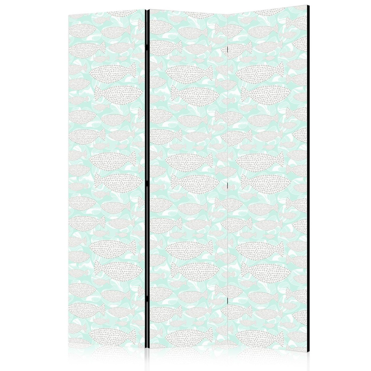 Paravent "Paravent - Minimalist Fish - Fish of Grey Dots on a Crystal Clear Water Surface in Mint Green Colors" Paravents sind hervorragende Dekorationselemente, die auf vielfältige Weise eingesetzt werden können. Sie verbinden perfekt Funktionalität und originelle Ästhetik. Aus diesem Grund sind sie sehr beliebt. Der Hauptvorteil ist, dass diese Dekoration einen Raum unterteilen kann, ohne dass Renovierungsarbeiten erforderlich sind. Im Folgenden finden Sie die Vorteile dieses Gestaltungselements – lassen Sie sich davon für Ihre Einrichtung inspirieren. Sie können die Paravents aus unserem Sortiment in drei Varianten kaufen, und jede von ihnen erfüllt eine interessante Funktion: Paravent – einseitig bedruckt, Paravent – doppelseitig bedruckt, Akustischer Paravent. Dies ist ein klarer Beweis dafür, dass die Trennwände auch sehr nützlich sind. Viele Menschen verwenden sie zum Beispiel, um einen Raum optisch zu unterteilen oder einen Teil davon zu verbergen. Der Raumtrenner ist auch häufig in Wirtschaftsräumen zu finden, zum Beispiel in einem Friseursalon, einem Boutique oder einer Arztpraxis. Jeder schätzt die Ästhetik und den praktischen Nutzen dieser Dekoration. Mit Raumteiler Paravent "Paravent - Minimalist Fish - Fish of Grey Dots on a Crystal Clear Water Surface in Mint Green Colors" können Sie Räume in Zonen aufteilen – das Schlafzimmer in Schlaf- und Garderobenbereiche, das Wohnzimmer in Sitz- und Essbereiche. Gestalten Sie Ihre Home-Office-Ecke und grenzen Sie den Bürobereich im Wohnzimmer mit einem stilvollen Raumteiler ab. Wie Sie es verwenden, hängt von Ihrer Phantasie, Ihren Bedürfnissen und Vorlieben ab.