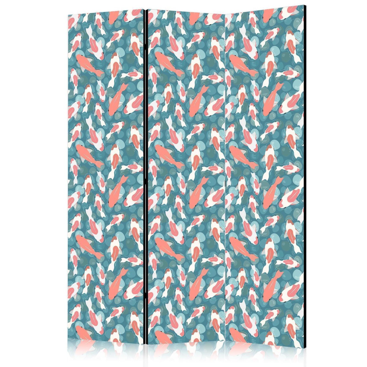 Paravent "Paravent - Oriental Pond - A Cluster of Japanese Fish Swimming in Crystal Clear Water with Glimmers of Light" Paravents sind hervorragende Dekorationselemente, die auf vielfältige Weise eingesetzt werden können. Sie verbinden perfekt Funktionalität und originelle Ästhetik. Aus diesem Grund sind sie sehr beliebt. Der Hauptvorteil ist, dass diese Dekoration einen Raum unterteilen kann, ohne dass Renovierungsarbeiten erforderlich sind. Im Folgenden finden Sie die Vorteile dieses Gestaltungselements – lassen Sie sich davon für Ihre Einrichtung inspirieren. Sie können die Paravents aus unserem Sortiment in drei Varianten kaufen, und jede von ihnen erfüllt eine interessante Funktion: Paravent – einseitig bedruckt, Paravent – doppelseitig bedruckt, Akustischer Paravent. Dies ist ein klarer Beweis dafür, dass die Trennwände auch sehr nützlich sind. Viele Menschen verwenden sie zum Beispiel, um einen Raum optisch zu unterteilen oder einen Teil davon zu verbergen. Der Raumtrenner ist auch häufig in Wirtschaftsräumen zu finden, zum Beispiel in einem Friseursalon, einem Boutique oder einer Arztpraxis. Jeder schätzt die Ästhetik und den praktischen Nutzen dieser Dekoration. Mit Raumteiler Paravent "Paravent - Oriental Pond - A Cluster of Japanese Fish Swimming in Crystal Clear Water with Glimmers of Light" können Sie Räume in Zonen aufteilen – das Schlafzimmer in Schlaf- und Garderobenbereiche, das Wohnzimmer in Sitz- und Essbereiche. Gestalten Sie Ihre Home-Office-Ecke und grenzen Sie den Bürobereich im Wohnzimmer mit einem stilvollen Raumteiler ab. Wie Sie es verwenden, hängt von Ihrer Phantasie, Ihren Bedürfnissen und Vorlieben ab.