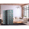 Raumteiler Paravent Unsere Raumteiler Paravents haben viele Vorteile. Zunächst einmal gibt es sie in verschiedenen Varianten, d.h. sie können aus drei oder fünf Teilen bestehen. Dank der Metallscharniere lässt sich diese Dekoration leicht zusammenfalten. Die Raumteiler stehen auf einem Sockel, der auch vor Beschädigungen schützt. Dieses dekorative Element besteht aus einer soliden Holzkonstruktion. Das Satinband sorgt für einen eleganten Abschluss und verstärkt die Seiten. Unsere Raumteiler sind aus Vliesstoff gefertigt, haben also eine feine Struktur und sind frei von sichtbaren Heftklammern. Es wurde auf jedes noch so kleine Detail geachtet, so dass diese Dekoration auch durch ihre Eleganz besticht. Wir haben hier also Funktionalität, Ästhetik und Eleganz – was will man mehr von einer Dekoration?Technische Details