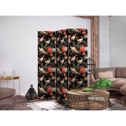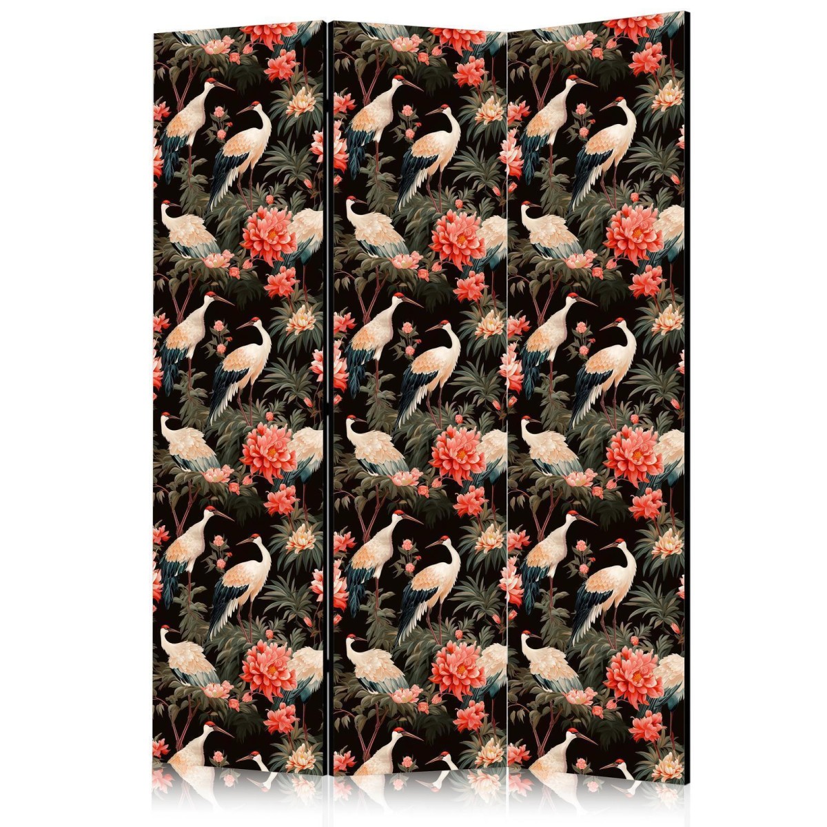 Spanische Wand Die spanische Wand kann sowohl im Wohnzimmer, Schlafzimmer, Kinderzimmer, Badezimmer als auch in der Küche aufgestellt werden. Viele Büro-, Restaurant- und Clubbesitzer entscheiden sich häufig für diese dekorative Lösung in ihren Räumlichkeiten. Die spanische Wand "Paravent - Ornament with birds - silhouettes of cranes and peony flowers on a dark background" ist aus geruchsneutralen Materialien hergestellt, die sicher sind und daher keine Allergien auslösen. Es ist eine vielseitige Dekorationsmöglichkeit, die viele Vorteile hat. Der Hauptvorteil ist, dass diese Dekoration leicht zu bewegen ist, so dass sie schnell und einfach neu positioniert werden kann. Wichtig ist, dass die inneren Trennwände einen UV-Schutz haben, so dass die Farben auch im Laufe der Jahre intensiv bleiben. Der Raumteiler hat Designs, die die Einrichtung jedes Raumes ergänzen können.