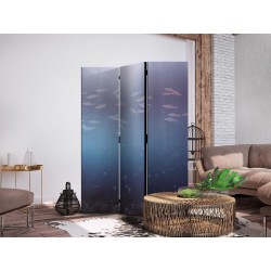 Paravent "Paravent - School of Small Fish - Illuminated Oceanic Depth in Shades of Navy Purple and Gray with a Shoal of Tiny Fish" Paravents sind hervorragende Dekorationselemente, die auf vielfältige Weise eingesetzt werden können. Sie verbinden perfekt Funktionalität und originelle Ästhetik. Aus diesem Grund sind sie sehr beliebt. Der Hauptvorteil ist, dass diese Dekoration einen Raum unterteilen kann, ohne dass Renovierungsarbeiten erforderlich sind. Im Folgenden finden Sie die Vorteile dieses Gestaltungselements – lassen Sie sich davon für Ihre Einrichtung inspirieren. Sie können die Paravents aus unserem Sortiment in drei Varianten kaufen, und jede von ihnen erfüllt eine interessante Funktion: Paravent – einseitig bedruckt, Paravent – doppelseitig bedruckt, Akustischer Paravent. Dies ist ein klarer Beweis dafür, dass die Trennwände auch sehr nützlich sind. Viele Menschen verwenden sie zum Beispiel, um einen Raum optisch zu unterteilen oder einen Teil davon zu verbergen. Der Raumtrenner ist auch häufig in Wirtschaftsräumen zu finden, zum Beispiel in einem Friseursalon, einem Boutique oder einer Arztpraxis. Jeder schätzt die Ästhetik und den praktischen Nutzen dieser Dekoration. Mit Raumteiler Paravent "Paravent - School of Small Fish - Illuminated Oceanic Depth in Shades of Navy Purple and Gray with a Shoal of Tiny Fish" können Sie Räume in Zonen aufteilen – das Schlafzimmer in Schlaf- und Garderobenbereiche, das Wohnzimmer in Sitz- und Essbereiche. Gestalten Sie Ihre Home-Office-Ecke und grenzen Sie den Bürobereich im Wohnzimmer mit einem stilvollen Raumteiler ab. Wie Sie es verwenden, hängt von Ihrer Phantasie, Ihren Bedürfnissen und Vorlieben ab.