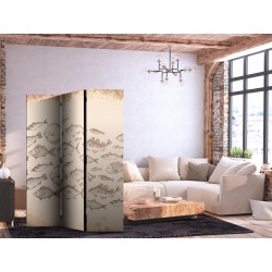 Paravent - Sketch of a Fish School - Sketches of Various Fish Species Swimming in a School on a Beige Background in Vint