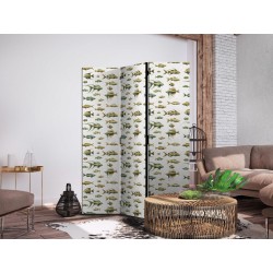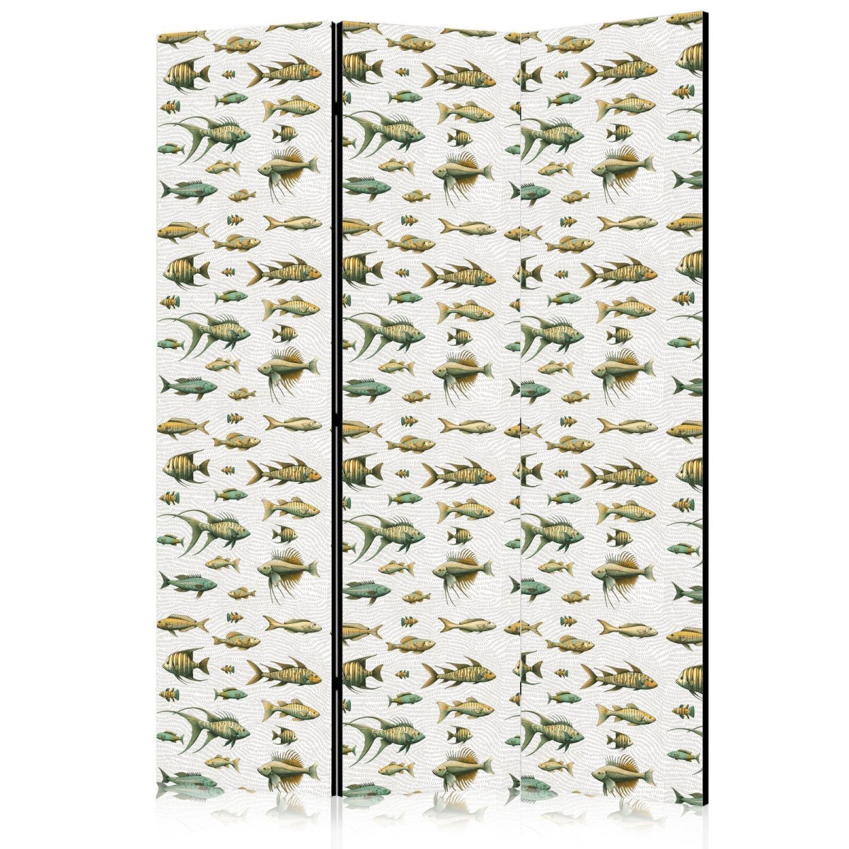 Paravent "Paravent - Unusual Species of Fish - A Cluster of Fish in Muted Colors in Retro Style on a Background of Beige Strokes" Paravents sind hervorragende Dekorationselemente, die auf vielfältige Weise eingesetzt werden können. Sie verbinden perfekt Funktionalität und originelle Ästhetik. Aus diesem Grund sind sie sehr beliebt. Der Hauptvorteil ist, dass diese Dekoration einen Raum unterteilen kann, ohne dass Renovierungsarbeiten erforderlich sind. Im Folgenden finden Sie die Vorteile dieses Gestaltungselements – lassen Sie sich davon für Ihre Einrichtung inspirieren. Sie können die Paravents aus unserem Sortiment in drei Varianten kaufen, und jede von ihnen erfüllt eine interessante Funktion: Paravent – einseitig bedruckt, Paravent – doppelseitig bedruckt, Akustischer Paravent. Dies ist ein klarer Beweis dafür, dass die Trennwände auch sehr nützlich sind. Viele Menschen verwenden sie zum Beispiel, um einen Raum optisch zu unterteilen oder einen Teil davon zu verbergen. Der Raumtrenner ist auch häufig in Wirtschaftsräumen zu finden, zum Beispiel in einem Friseursalon, einem Boutique oder einer Arztpraxis. Jeder schätzt die Ästhetik und den praktischen Nutzen dieser Dekoration. Mit Raumteiler Paravent "Paravent - Unusual Species of Fish - A Cluster of Fish in Muted Colors in Retro Style on a Background of Beige Strokes" können Sie Räume in Zonen aufteilen – das Schlafzimmer in Schlaf- und Garderobenbereiche, das Wohnzimmer in Sitz- und Essbereiche. Gestalten Sie Ihre Home-Office-Ecke und grenzen Sie den Bürobereich im Wohnzimmer mit einem stilvollen Raumteiler ab. Wie Sie es verwenden, hängt von Ihrer Phantasie, Ihren Bedürfnissen und Vorlieben ab.
