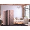 Raumteiler Paravent Unsere Raumteiler Paravents haben viele Vorteile. Zunächst einmal gibt es sie in verschiedenen Varianten, d.h. sie können aus drei oder fünf Teilen bestehen. Dank der Metallscharniere lässt sich diese Dekoration leicht zusammenfalten. Die Raumteiler stehen auf einem Sockel, der auch vor Beschädigungen schützt. Dieses dekorative Element besteht aus einer soliden Holzkonstruktion. Das Satinband sorgt für einen eleganten Abschluss und verstärkt die Seiten. Unsere Raumteiler sind aus Vliesstoff gefertigt, haben also eine feine Struktur und sind frei von sichtbaren Heftklammern. Es wurde auf jedes noch so kleine Detail geachtet, so dass diese Dekoration auch durch ihre Eleganz besticht. Wir haben hier also Funktionalität, Ästhetik und Eleganz – was will man mehr von einer Dekoration?Technische Details
