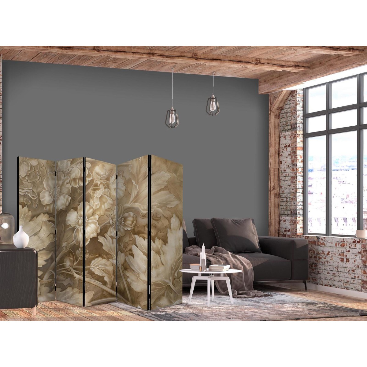 Spanische Wand Die spanische Wand kann sowohl im Wohnzimmer, Schlafzimmer, Kinderzimmer, Badezimmer als auch in der Küche aufgestellt werden. Viele Büro-, Restaurant- und Clubbesitzer entscheiden sich häufig für diese dekorative Lösung in ihren Räumlichkeiten. Die spanische Wand "Paravent - Carved Floral Ornaments in Soft Sepia and Brown Tones" ist aus geruchsneutralen Materialien hergestellt, die sicher sind und daher keine Allergien auslösen. Es ist eine vielseitige Dekorationsmöglichkeit, die viele Vorteile hat. Der Hauptvorteil ist, dass diese Dekoration leicht zu bewegen ist, so dass sie schnell und einfach neu positioniert werden kann. Wichtig ist, dass die inneren Trennwände einen UV-Schutz haben, so dass die Farben auch im Laufe der Jahre intensiv bleiben. Der Raumteiler hat Designs, die die Einrichtung jedes Raumes ergänzen können.