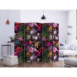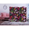 Paravent "Paravent - Colorful Exotic II" Paravents sind hervorragende Dekorationselemente, die auf vielfältige Weise eingesetzt werden können. Sie verbinden perfekt Funktionalität und originelle Ästhetik. Aus diesem Grund sind sie sehr beliebt. Der Hauptvorteil ist, dass diese Dekoration einen Raum unterteilen kann, ohne dass Renovierungsarbeiten erforderlich sind. Im Folgenden finden Sie die Vorteile dieses Gestaltungselements – lassen Sie sich davon für Ihre Einrichtung inspirieren. Sie können die Paravents aus unserem Sortiment in drei Varianten kaufen, und jede von ihnen erfüllt eine interessante Funktion: Paravent – einseitig bedruckt, Paravent – doppelseitig bedruckt, Akustischer Paravent. Dies ist ein klarer Beweis dafür, dass die Trennwände auch sehr nützlich sind. Viele Menschen verwenden sie zum Beispiel, um einen Raum optisch zu unterteilen oder einen Teil davon zu verbergen. Der Raumtrenner ist auch häufig in Wirtschaftsräumen zu finden, zum Beispiel in einem Friseursalon, einem Boutique oder einer Arztpraxis. Jeder schätzt die Ästhetik und den praktischen Nutzen dieser Dekoration. Mit Raumteiler Paravent "Paravent - Colorful Exotic II" können Sie Räume in Zonen aufteilen – das Schlafzimmer in Schlaf- und Garderobenbereiche, das Wohnzimmer in Sitz- und Essbereiche. Gestalten Sie Ihre Home-Office-Ecke und grenzen Sie den Bürobereich im Wohnzimmer mit einem stilvollen Raumteiler ab. Wie Sie es verwenden, hängt von Ihrer Phantasie, Ihren Bedürfnissen und Vorlieben ab.