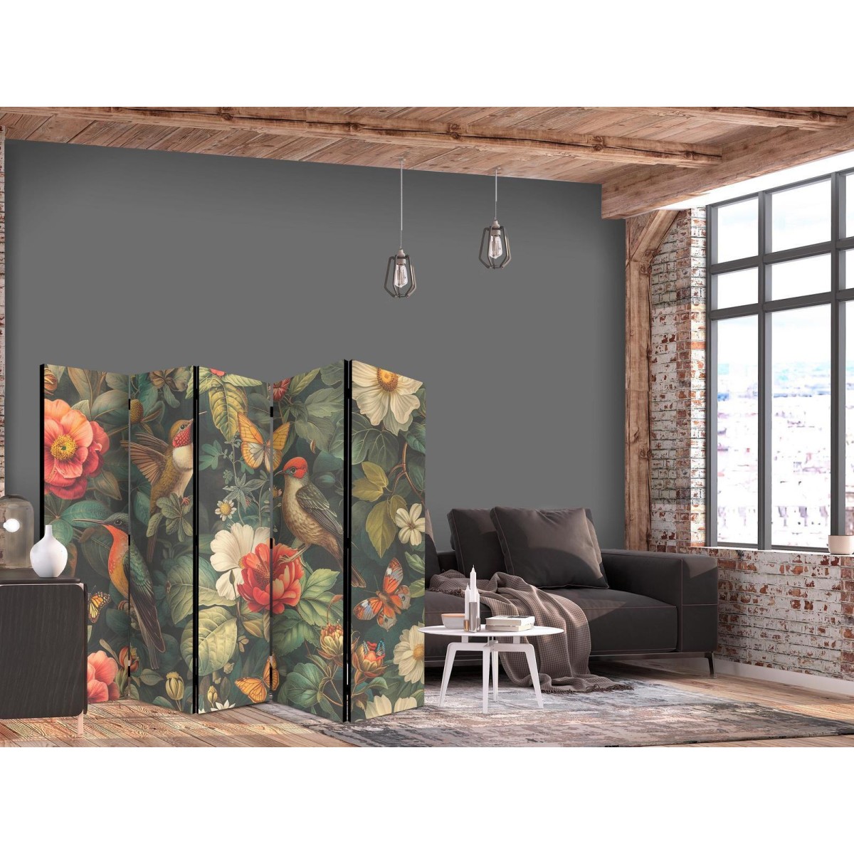 Spanische Wand Die spanische Wand kann sowohl im Wohnzimmer, Schlafzimmer, Kinderzimmer, Badezimmer als auch in der Küche aufgestellt werden. Viele Büro-, Restaurant- und Clubbesitzer entscheiden sich häufig für diese dekorative Lösung in ihren Räumlichkeiten. Die spanische Wand "Paravent - In the Botanical Garden - Flowers Birds and Butterflies - Colorful Illustration" ist aus geruchsneutralen Materialien hergestellt, die sicher sind und daher keine Allergien auslösen. Es ist eine vielseitige Dekorationsmöglichkeit, die viele Vorteile hat. Der Hauptvorteil ist, dass diese Dekoration leicht zu bewegen ist, so dass sie schnell und einfach neu positioniert werden kann. Wichtig ist, dass die inneren Trennwände einen UV-Schutz haben, so dass die Farben auch im Laufe der Jahre intensiv bleiben. Der Raumteiler hat Designs, die die Einrichtung jedes Raumes ergänzen können.