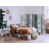 Raumteiler Paravent Unsere Raumteiler Paravents haben viele Vorteile. Zunächst einmal gibt es sie in verschiedenen Varianten, d.h. sie können aus drei oder fünf Teilen bestehen. Dank der Metallscharniere lässt sich diese Dekoration leicht zusammenfalten. Die Raumteiler stehen auf einem Sockel, der auch vor Beschädigungen schützt. Dieses dekorative Element besteht aus einer soliden Holzkonstruktion. Das Satinband sorgt für einen eleganten Abschluss und verstärkt die Seiten. Unsere Raumteiler sind aus Vliesstoff gefertigt, haben also eine feine Struktur und sind frei von sichtbaren Heftklammern. Es wurde auf jedes noch so kleine Detail geachtet, so dass diese Dekoration auch durch ihre Eleganz besticht. Wir haben hier also Funktionalität, Ästhetik und Eleganz – was will man mehr von einer Dekoration?Technische Details