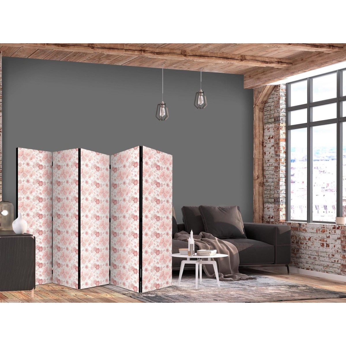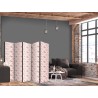 Raumteiler Paravent Unsere Raumteiler Paravents haben viele Vorteile. Zunächst einmal gibt es sie in verschiedenen Varianten, d.h. sie können aus drei oder fünf Teilen bestehen. Dank der Metallscharniere lässt sich diese Dekoration leicht zusammenfalten. Die Raumteiler stehen auf einem Sockel, der auch vor Beschädigungen schützt. Dieses dekorative Element besteht aus einer soliden Holzkonstruktion. Das Satinband sorgt für einen eleganten Abschluss und verstärkt die Seiten. Unsere Raumteiler sind aus Vliesstoff gefertigt, haben also eine feine Struktur und sind frei von sichtbaren Heftklammern. Es wurde auf jedes noch so kleine Detail geachtet, so dass diese Dekoration auch durch ihre Eleganz besticht. Wir haben hier also Funktionalität, Ästhetik und Eleganz – was will man mehr von einer Dekoration?Technische Details
