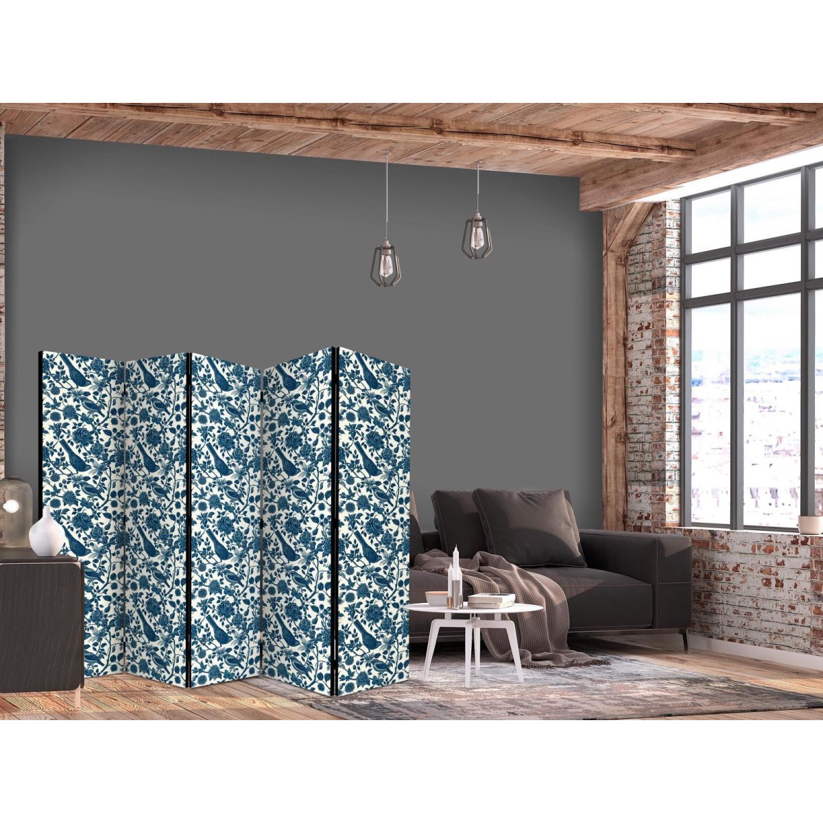 Paravent - Rose Vines - Monochromatic Blue Birds Resting Among Roses