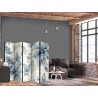 Raumteiler Paravent Unsere Raumteiler Paravents haben viele Vorteile. Zunächst einmal gibt es sie in verschiedenen Varianten, d.h. sie können aus drei oder fünf Teilen bestehen. Dank der Metallscharniere lässt sich diese Dekoration leicht zusammenfalten. Die Raumteiler stehen auf einem Sockel, der auch vor Beschädigungen schützt. Dieses dekorative Element besteht aus einer soliden Holzkonstruktion. Das Satinband sorgt für einen eleganten Abschluss und verstärkt die Seiten. Unsere Raumteiler sind aus Vliesstoff gefertigt, haben also eine feine Struktur und sind frei von sichtbaren Heftklammern. Es wurde auf jedes noch so kleine Detail geachtet, so dass diese Dekoration auch durch ihre Eleganz besticht. Wir haben hier also Funktionalität, Ästhetik und Eleganz – was will man mehr von einer Dekoration?Technische Details