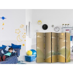 Raumteiler Paravent Unsere Raumteiler Paravents haben viele Vorteile. Zunächst einmal gibt es sie in verschiedenen Varianten, d.h. sie können aus drei oder fünf Teilen bestehen. Dank der Metallscharniere lässt sich diese Dekoration leicht zusammenfalten. Die Raumteiler stehen auf einem Sockel, der auch vor Beschädigungen schützt. Dieses dekorative Element besteht aus einer soliden Holzkonstruktion. Das Satinband sorgt für einen eleganten Abschluss und verstärkt die Seiten. Unsere Raumteiler sind aus Vliesstoff gefertigt, haben also eine feine Struktur und sind frei von sichtbaren Heftklammern. Es wurde auf jedes noch so kleine Detail geachtet, so dass diese Dekoration auch durch ihre Eleganz besticht. Wir haben hier also Funktionalität, Ästhetik und Eleganz – was will man mehr von einer Dekoration?Technische Details