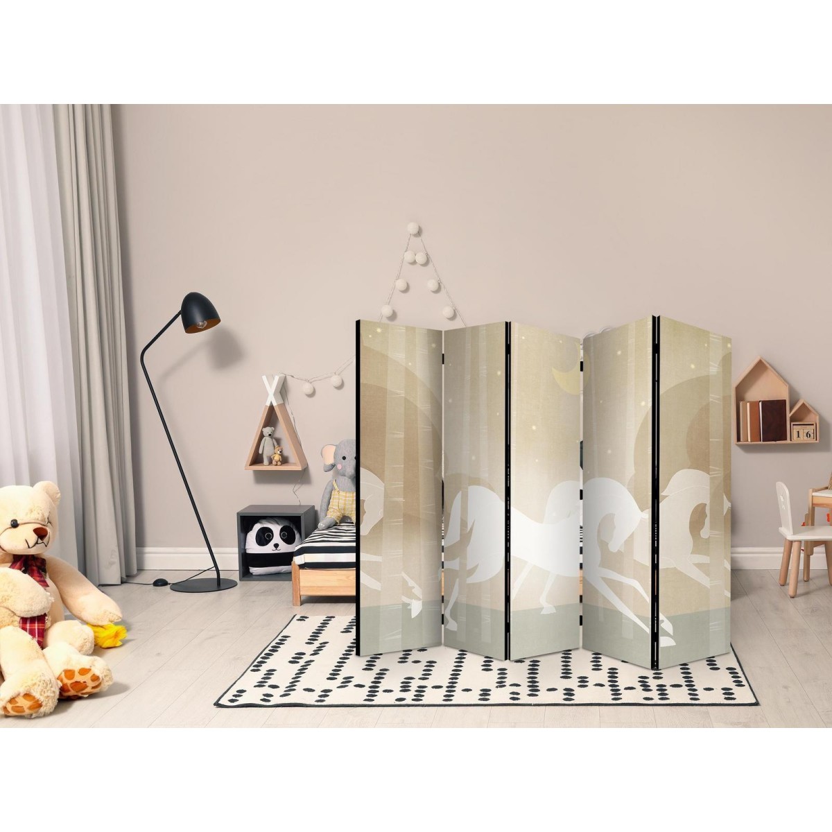 Spanische Wand Die spanische Wand kann sowohl im Wohnzimmer, Schlafzimmer, Kinderzimmer, Badezimmer als auch in der Küche aufgestellt werden. Viele Büro-, Restaurant- und Clubbesitzer entscheiden sich häufig für diese dekorative Lösung in ihren Räumlichkeiten. Die spanische Wand "Paravent - Moonlit Steeds - Horses Galloping Among Trees on a Starry Night" ist aus geruchsneutralen Materialien hergestellt, die sicher sind und daher keine Allergien auslösen. Es ist eine vielseitige Dekorationsmöglichkeit, die viele Vorteile hat. Der Hauptvorteil ist, dass diese Dekoration leicht zu bewegen ist, so dass sie schnell und einfach neu positioniert werden kann. Wichtig ist, dass die inneren Trennwände einen UV-Schutz haben, so dass die Farben auch im Laufe der Jahre intensiv bleiben. Der Raumteiler hat Designs, die die Einrichtung jedes Raumes ergänzen können.