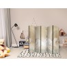 Raumteiler Paravent Unsere Raumteiler Paravents haben viele Vorteile. Zunächst einmal gibt es sie in verschiedenen Varianten, d.h. sie können aus drei oder fünf Teilen bestehen. Dank der Metallscharniere lässt sich diese Dekoration leicht zusammenfalten. Die Raumteiler stehen auf einem Sockel, der auch vor Beschädigungen schützt. Dieses dekorative Element besteht aus einer soliden Holzkonstruktion. Das Satinband sorgt für einen eleganten Abschluss und verstärkt die Seiten. Unsere Raumteiler sind aus Vliesstoff gefertigt, haben also eine feine Struktur und sind frei von sichtbaren Heftklammern. Es wurde auf jedes noch so kleine Detail geachtet, so dass diese Dekoration auch durch ihre Eleganz besticht. Wir haben hier also Funktionalität, Ästhetik und Eleganz – was will man mehr von einer Dekoration?Technische Details