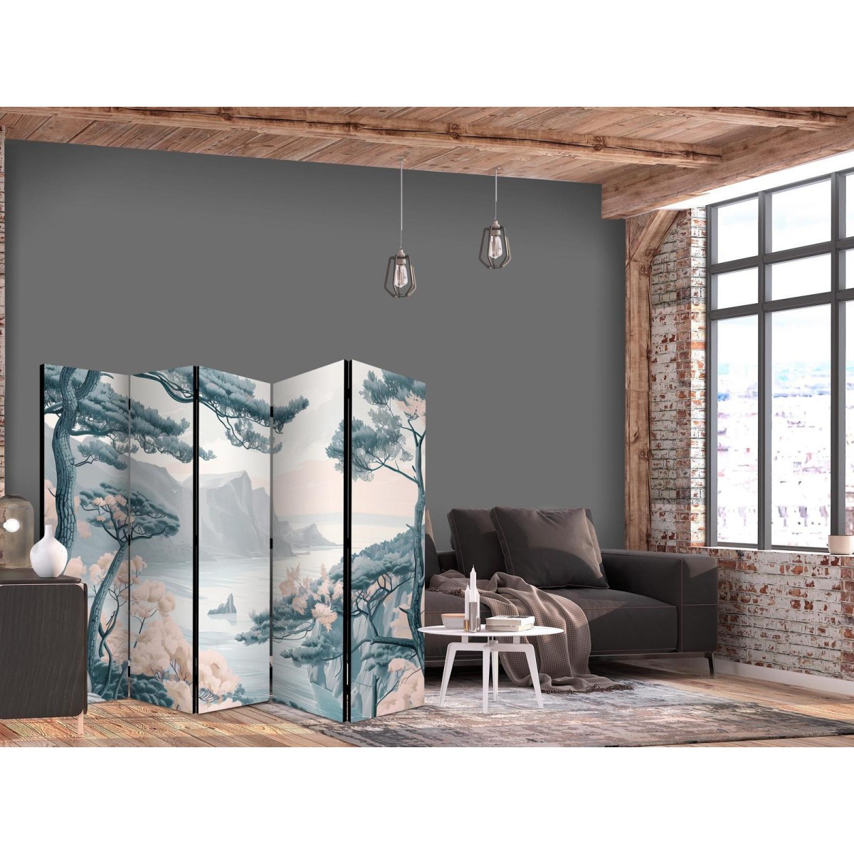 Spanische Wand Die spanische Wand kann sowohl im Wohnzimmer, Schlafzimmer, Kinderzimmer, Badezimmer als auch in der Küche aufgestellt werden. Viele Büro-, Restaurant- und Clubbesitzer entscheiden sich häufig für diese dekorative Lösung in ihren Räumlichkeiten. Die spanische Wand "Paravent - Mountainous Coast with Trees and Rocks - in Light Pastel Blues" ist aus geruchsneutralen Materialien hergestellt, die sicher sind und daher keine Allergien auslösen. Es ist eine vielseitige Dekorationsmöglichkeit, die viele Vorteile hat. Der Hauptvorteil ist, dass diese Dekoration leicht zu bewegen ist, so dass sie schnell und einfach neu positioniert werden kann. Wichtig ist, dass die inneren Trennwände einen UV-Schutz haben, so dass die Farben auch im Laufe der Jahre intensiv bleiben. Der Raumteiler hat Designs, die die Einrichtung jedes Raumes ergänzen können.