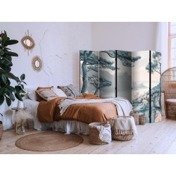 Paravent "Paravent - Mountainous Coast with Trees and Rocks - in Light Pastel Blues" Paravents sind hervorragende Dekorationselemente, die auf vielfältige Weise eingesetzt werden können. Sie verbinden perfekt Funktionalität und originelle Ästhetik. Aus diesem Grund sind sie sehr beliebt. Der Hauptvorteil ist, dass diese Dekoration einen Raum unterteilen kann, ohne dass Renovierungsarbeiten erforderlich sind. Im Folgenden finden Sie die Vorteile dieses Gestaltungselements – lassen Sie sich davon für Ihre Einrichtung inspirieren. Sie können die Paravents aus unserem Sortiment in drei Varianten kaufen, und jede von ihnen erfüllt eine interessante Funktion: Paravent – einseitig bedruckt, Paravent – doppelseitig bedruckt, Akustischer Paravent. Dies ist ein klarer Beweis dafür, dass die Trennwände auch sehr nützlich sind. Viele Menschen verwenden sie zum Beispiel, um einen Raum optisch zu unterteilen oder einen Teil davon zu verbergen. Der Raumtrenner ist auch häufig in Wirtschaftsräumen zu finden, zum Beispiel in einem Friseursalon, einem Boutique oder einer Arztpraxis. Jeder schätzt die Ästhetik und den praktischen Nutzen dieser Dekoration. Mit Raumteiler Paravent "Paravent - Mountainous Coast with Trees and Rocks - in Light Pastel Blues" können Sie Räume in Zonen aufteilen – das Schlafzimmer in Schlaf- und Garderobenbereiche, das Wohnzimmer in Sitz- und Essbereiche. Gestalten Sie Ihre Home-Office-Ecke und grenzen Sie den Bürobereich im Wohnzimmer mit einem stilvollen Raumteiler ab. Wie Sie es verwenden, hängt von Ihrer Phantasie, Ihren Bedürfnissen und Vorlieben ab.