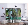 Spanische Wand Die spanische Wand kann sowohl im Wohnzimmer, Schlafzimmer, Kinderzimmer, Badezimmer als auch in der Küche aufgestellt werden. Viele Büro-, Restaurant- und Clubbesitzer entscheiden sich häufig für diese dekorative Lösung in ihren Räumlichkeiten. Die spanische Wand "Paravent - On the terrace II" ist aus geruchsneutralen Materialien hergestellt, die sicher sind und daher keine Allergien auslösen. Es ist eine vielseitige Dekorationsmöglichkeit, die viele Vorteile hat. Der Hauptvorteil ist, dass diese Dekoration leicht zu bewegen ist, so dass sie schnell und einfach neu positioniert werden kann. Wichtig ist, dass die inneren Trennwände einen UV-Schutz haben, so dass die Farben auch im Laufe der Jahre intensiv bleiben. Der Raumteiler hat Designs, die die Einrichtung jedes Raumes ergänzen können.