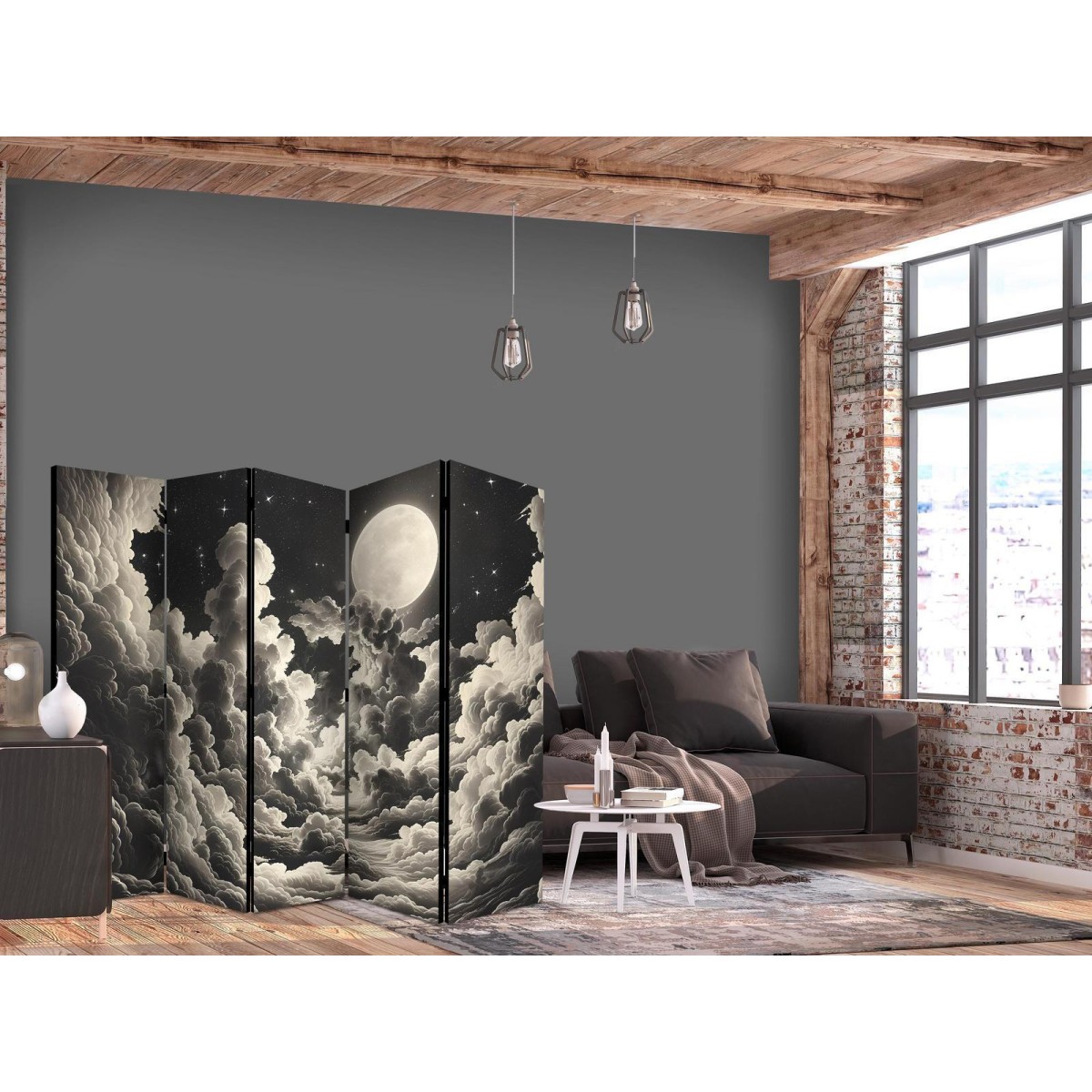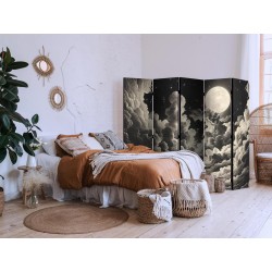 Paravent "Paravent - The Moon and Stars Singing Amongst Great Clouds" Paravents sind hervorragende Dekorationselemente, die auf vielfältige Weise eingesetzt werden können. Sie verbinden perfekt Funktionalität und originelle Ästhetik. Aus diesem Grund sind sie sehr beliebt. Der Hauptvorteil ist, dass diese Dekoration einen Raum unterteilen kann, ohne dass Renovierungsarbeiten erforderlich sind. Im Folgenden finden Sie die Vorteile dieses Gestaltungselements – lassen Sie sich davon für Ihre Einrichtung inspirieren. Sie können die Paravents aus unserem Sortiment in drei Varianten kaufen, und jede von ihnen erfüllt eine interessante Funktion: Paravent – einseitig bedruckt, Paravent – doppelseitig bedruckt, Akustischer Paravent. Dies ist ein klarer Beweis dafür, dass die Trennwände auch sehr nützlich sind. Viele Menschen verwenden sie zum Beispiel, um einen Raum optisch zu unterteilen oder einen Teil davon zu verbergen. Der Raumtrenner ist auch häufig in Wirtschaftsräumen zu finden, zum Beispiel in einem Friseursalon, einem Boutique oder einer Arztpraxis. Jeder schätzt die Ästhetik und den praktischen Nutzen dieser Dekoration. Mit Raumteiler Paravent "Paravent - The Moon and Stars Singing Amongst Great Clouds" können Sie Räume in Zonen aufteilen – das Schlafzimmer in Schlaf- und Garderobenbereiche, das Wohnzimmer in Sitz- und Essbereiche. Gestalten Sie Ihre Home-Office-Ecke und grenzen Sie den Bürobereich im Wohnzimmer mit einem stilvollen Raumteiler ab. Wie Sie es verwenden, hängt von Ihrer Phantasie, Ihren Bedürfnissen und Vorlieben ab.