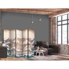 Raumteiler Paravent Unsere Raumteiler Paravents haben viele Vorteile. Zunächst einmal gibt es sie in verschiedenen Varianten, d.h. sie können aus drei oder fünf Teilen bestehen. Dank der Metallscharniere lässt sich diese Dekoration leicht zusammenfalten. Die Raumteiler stehen auf einem Sockel, der auch vor Beschädigungen schützt. Dieses dekorative Element besteht aus einer soliden Holzkonstruktion. Das Satinband sorgt für einen eleganten Abschluss und verstärkt die Seiten. Unsere Raumteiler sind aus Vliesstoff gefertigt, haben also eine feine Struktur und sind frei von sichtbaren Heftklammern. Es wurde auf jedes noch so kleine Detail geachtet, so dass diese Dekoration auch durch ihre Eleganz besticht. Wir haben hier also Funktionalität, Ästhetik und Eleganz – was will man mehr von einer Dekoration?Technische Details