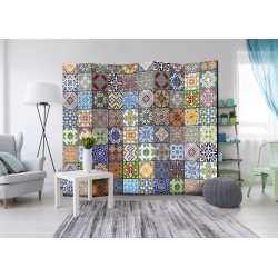Spanische Wand Die spanische Wand kann sowohl im Wohnzimmer, Schlafzimmer, Kinderzimmer, Badezimmer als auch in der Küche aufgestellt werden. Viele Büro-, Restaurant- und Clubbesitzer entscheiden sich häufig für diese dekorative Lösung in ihren Räumlichkeiten. Die spanische Wand "Paravent - Colorful Mosaic II" ist aus geruchsneutralen Materialien hergestellt, die sicher sind und daher keine Allergien auslösen. Es ist eine vielseitige Dekorationsmöglichkeit, die viele Vorteile hat. Der Hauptvorteil ist, dass diese Dekoration leicht zu bewegen ist, so dass sie schnell und einfach neu positioniert werden kann. Wichtig ist, dass die inneren Trennwände einen UV-Schutz haben, so dass die Farben auch im Laufe der Jahre intensiv bleiben. Der Raumteiler hat Designs, die die Einrichtung jedes Raumes ergänzen können.
