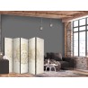 Raumteiler Paravent Unsere Raumteiler Paravents haben viele Vorteile. Zunächst einmal gibt es sie in verschiedenen Varianten, d.h. sie können aus drei oder fünf Teilen bestehen. Dank der Metallscharniere lässt sich diese Dekoration leicht zusammenfalten. Die Raumteiler stehen auf einem Sockel, der auch vor Beschädigungen schützt. Dieses dekorative Element besteht aus einer soliden Holzkonstruktion. Das Satinband sorgt für einen eleganten Abschluss und verstärkt die Seiten. Unsere Raumteiler sind aus Vliesstoff gefertigt, haben also eine feine Struktur und sind frei von sichtbaren Heftklammern. Es wurde auf jedes noch so kleine Detail geachtet, so dass diese Dekoration auch durch ihre Eleganz besticht. Wir haben hier also Funktionalität, Ästhetik und Eleganz – was will man mehr von einer Dekoration?Technische Details