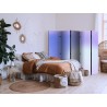Raumteiler Paravent Unsere Raumteiler Paravents haben viele Vorteile. Zunächst einmal gibt es sie in verschiedenen Varianten, d.h. sie können aus drei oder fünf Teilen bestehen. Dank der Metallscharniere lässt sich diese Dekoration leicht zusammenfalten. Die Raumteiler stehen auf einem Sockel, der auch vor Beschädigungen schützt. Dieses dekorative Element besteht aus einer soliden Holzkonstruktion. Das Satinband sorgt für einen eleganten Abschluss und verstärkt die Seiten. Unsere Raumteiler sind aus Vliesstoff gefertigt, haben also eine feine Struktur und sind frei von sichtbaren Heftklammern. Es wurde auf jedes noch so kleine Detail geachtet, so dass diese Dekoration auch durch ihre Eleganz besticht. Wir haben hier also Funktionalität, Ästhetik und Eleganz – was will man mehr von einer Dekoration?Technische Details