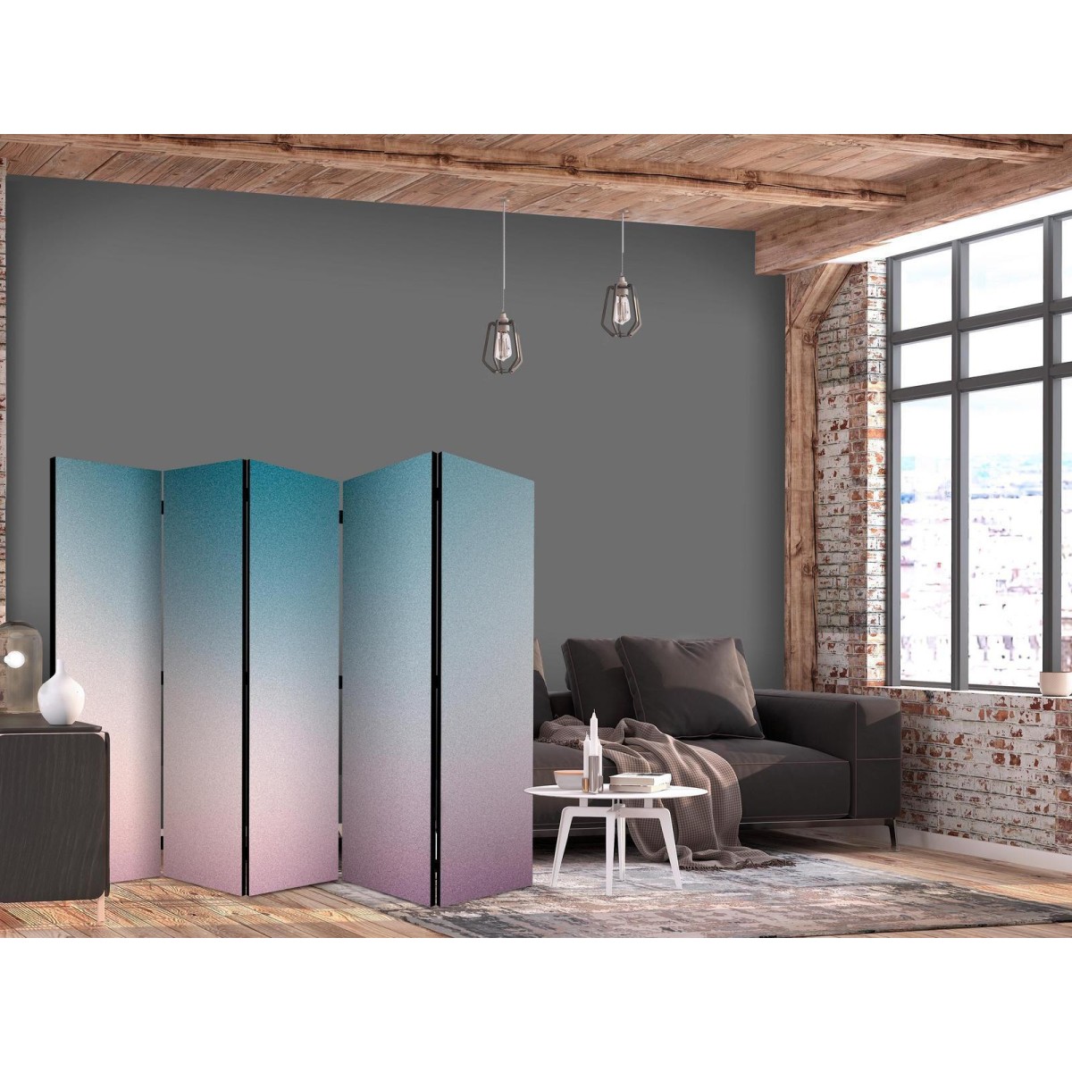 Paravent "Paravent - Nostalgic Gradient - Gradient Composition in Subdued Colors" Paravents sind hervorragende Dekorationselemente, die auf vielfältige Weise eingesetzt werden können. Sie verbinden perfekt Funktionalität und originelle Ästhetik. Aus diesem Grund sind sie sehr beliebt. Der Hauptvorteil ist, dass diese Dekoration einen Raum unterteilen kann, ohne dass Renovierungsarbeiten erforderlich sind. Im Folgenden finden Sie die Vorteile dieses Gestaltungselements – lassen Sie sich davon für Ihre Einrichtung inspirieren. Sie können die Paravents aus unserem Sortiment in drei Varianten kaufen, und jede von ihnen erfüllt eine interessante Funktion: Paravent – einseitig bedruckt, Paravent – doppelseitig bedruckt, Akustischer Paravent. Dies ist ein klarer Beweis dafür, dass die Trennwände auch sehr nützlich sind. Viele Menschen verwenden sie zum Beispiel, um einen Raum optisch zu unterteilen oder einen Teil davon zu verbergen. Der Raumtrenner ist auch häufig in Wirtschaftsräumen zu finden, zum Beispiel in einem Friseursalon, einem Boutique oder einer Arztpraxis. Jeder schätzt die Ästhetik und den praktischen Nutzen dieser Dekoration. Mit Raumteiler Paravent "Paravent - Nostalgic Gradient - Gradient Composition in Subdued Colors" können Sie Räume in Zonen aufteilen – das Schlafzimmer in Schlaf- und Garderobenbereiche, das Wohnzimmer in Sitz- und Essbereiche. Gestalten Sie Ihre Home-Office-Ecke und grenzen Sie den Bürobereich im Wohnzimmer mit einem stilvollen Raumteiler ab. Wie Sie es verwenden, hängt von Ihrer Phantasie, Ihren Bedürfnissen und Vorlieben ab.