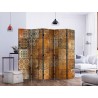 Raumteiler Paravent Unsere Raumteiler Paravents haben viele Vorteile. Zunächst einmal gibt es sie in verschiedenen Varianten, d.h. sie können aus drei oder fünf Teilen bestehen. Dank der Metallscharniere lässt sich diese Dekoration leicht zusammenfalten. Die Raumteiler stehen auf einem Sockel, der auch vor Beschädigungen schützt. Dieses dekorative Element besteht aus einer soliden Holzkonstruktion. Das Satinband sorgt für einen eleganten Abschluss und verstärkt die Seiten. Unsere Raumteiler sind aus Vliesstoff gefertigt, haben also eine feine Struktur und sind frei von sichtbaren Heftklammern. Es wurde auf jedes noch so kleine Detail geachtet, so dass diese Dekoration auch durch ihre Eleganz besticht. Wir haben hier also Funktionalität, Ästhetik und Eleganz – was will man mehr von einer Dekoration?Technische Details