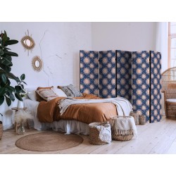 Spanische Wand Die spanische Wand kann sowohl im Wohnzimmer, Schlafzimmer, Kinderzimmer, Badezimmer als auch in der Küche aufgestellt werden. Viele Büro-, Restaurant- und Clubbesitzer entscheiden sich häufig für diese dekorative Lösung in ihren Räumlichkeiten. Die spanische Wand "Paravent - Sunny Patterns - Repeating Sun Motif on a Navy Background" ist aus geruchsneutralen Materialien hergestellt, die sicher sind und daher keine Allergien auslösen. Es ist eine vielseitige Dekorationsmöglichkeit, die viele Vorteile hat. Der Hauptvorteil ist, dass diese Dekoration leicht zu bewegen ist, so dass sie schnell und einfach neu positioniert werden kann. Wichtig ist, dass die inneren Trennwände einen UV-Schutz haben, so dass die Farben auch im Laufe der Jahre intensiv bleiben. Der Raumteiler hat Designs, die die Einrichtung jedes Raumes ergänzen können.