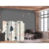Raumteiler Paravent Unsere Raumteiler Paravents haben viele Vorteile. Zunächst einmal gibt es sie in verschiedenen Varianten, d.h. sie können aus drei oder fünf Teilen bestehen. Dank der Metallscharniere lässt sich diese Dekoration leicht zusammenfalten. Die Raumteiler stehen auf einem Sockel, der auch vor Beschädigungen schützt. Dieses dekorative Element besteht aus einer soliden Holzkonstruktion. Das Satinband sorgt für einen eleganten Abschluss und verstärkt die Seiten. Unsere Raumteiler sind aus Vliesstoff gefertigt, haben also eine feine Struktur und sind frei von sichtbaren Heftklammern. Es wurde auf jedes noch so kleine Detail geachtet, so dass diese Dekoration auch durch ihre Eleganz besticht. Wir haben hier also Funktionalität, Ästhetik und Eleganz – was will man mehr von einer Dekoration?Technische Details
