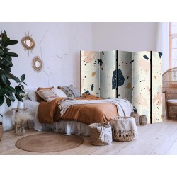 Spanische Wand Die spanische Wand kann sowohl im Wohnzimmer, Schlafzimmer, Kinderzimmer, Badezimmer als auch in der Küche aufgestellt werden. Viele Büro-, Restaurant- und Clubbesitzer entscheiden sich häufig für diese dekorative Lösung in ihren Räumlichkeiten. Die spanische Wand "Paravent - Terrazzo with Large - Scaled Stones in Subdued Colors" ist aus geruchsneutralen Materialien hergestellt, die sicher sind und daher keine Allergien auslösen. Es ist eine vielseitige Dekorationsmöglichkeit, die viele Vorteile hat. Der Hauptvorteil ist, dass diese Dekoration leicht zu bewegen ist, so dass sie schnell und einfach neu positioniert werden kann. Wichtig ist, dass die inneren Trennwände einen UV-Schutz haben, so dass die Farben auch im Laufe der Jahre intensiv bleiben. Der Raumteiler hat Designs, die die Einrichtung jedes Raumes ergänzen können.