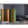 Spanische Wand Die spanische Wand kann sowohl im Wohnzimmer, Schlafzimmer, Kinderzimmer, Badezimmer als auch in der Küche aufgestellt werden. Viele Büro-, Restaurant- und Clubbesitzer entscheiden sich häufig für diese dekorative Lösung in ihren Räumlichkeiten. Die spanische Wand "Paravent - Wooden rainbow II" ist aus geruchsneutralen Materialien hergestellt, die sicher sind und daher keine Allergien auslösen. Es ist eine vielseitige Dekorationsmöglichkeit, die viele Vorteile hat. Der Hauptvorteil ist, dass diese Dekoration leicht zu bewegen ist, so dass sie schnell und einfach neu positioniert werden kann. Wichtig ist, dass die inneren Trennwände einen UV-Schutz haben, so dass die Farben auch im Laufe der Jahre intensiv bleiben. Der Raumteiler hat Designs, die die Einrichtung jedes Raumes ergänzen können.