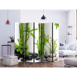 Spanische Wand Die spanische Wand kann sowohl im Wohnzimmer, Schlafzimmer, Kinderzimmer, Badezimmer als auch in der Küche aufgestellt werden. Viele Büro-, Restaurant- und Clubbesitzer entscheiden sich häufig für diese dekorative Lösung in ihren Räumlichkeiten. Die spanische Wand "Paravent - Bamboos and Stones II" ist aus geruchsneutralen Materialien hergestellt, die sicher sind und daher keine Allergien auslösen. Es ist eine vielseitige Dekorationsmöglichkeit, die viele Vorteile hat. Der Hauptvorteil ist, dass diese Dekoration leicht zu bewegen ist, so dass sie schnell und einfach neu positioniert werden kann. Wichtig ist, dass die inneren Trennwände einen UV-Schutz haben, so dass die Farben auch im Laufe der Jahre intensiv bleiben. Der Raumteiler hat Designs, die die Einrichtung jedes Raumes ergänzen können.